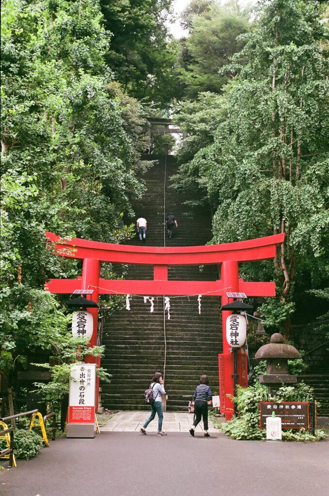愛宕神社を語る上で欠かせないのが、正面参道にある「出世の石段」である。全長約40メートル、86段、傾斜角度約40度という急勾配の石段は、愛宕神社のシンボルとして知られている。