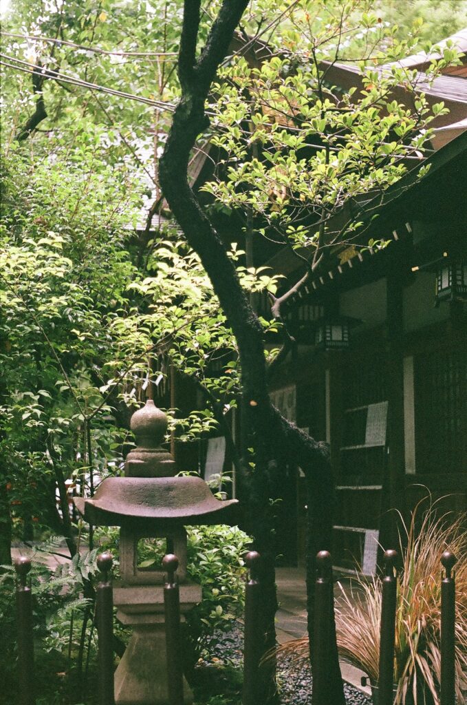 拝殿は入母屋造りで、本殿と幣殿が一体となった権現造りの構成を持つ。戦後の再建ながら、江戸時代から続く神社建築の伝統的な様式を踏襲している。境内には樹齢を重ねた樹木が茂り、都心にありながら神域としての静謐な雰囲気を保っている。