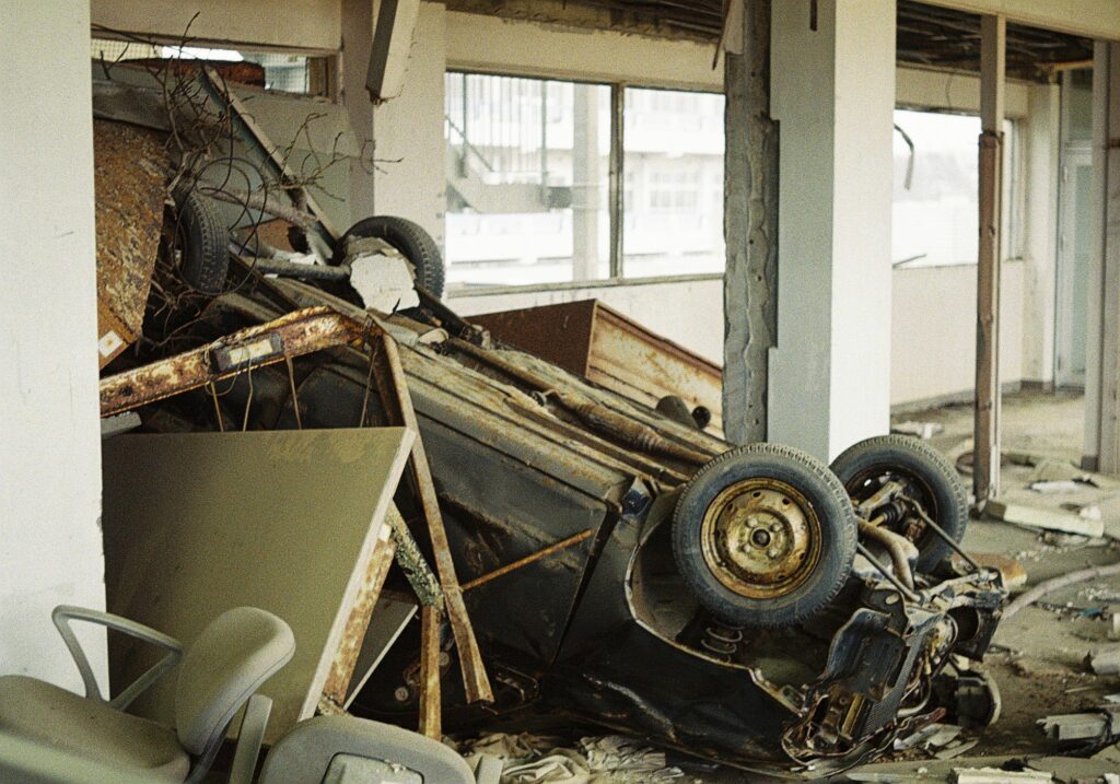 最初に訪れたのは、気仙沼市東日本大震災遺構・伝承館。2019年3月にオープンしたこの施設は、震災で被災した旧宮城県気仙沼向洋高等学校の校舎を、ほぼ当時のまま保存した極めて特異な建築です。
