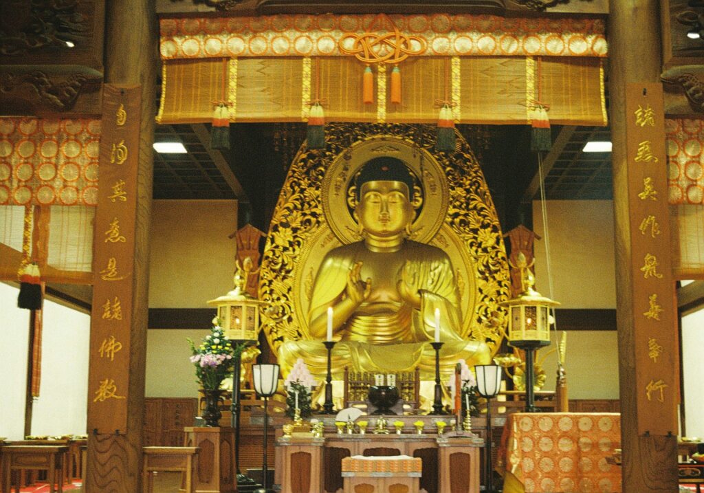 三間堂、宝形造、杮葺きの金色堂は、一辺約5.5メートル四方、高さ約8メートルの木造建築です。しかし、そのサイズからは想像できないほどの圧倒的な存在感があります。内外に金箔を押した「皆金色」の建築は、まさに極楽浄土を現世に再現しようとした清衡公の思想の結晶です。
