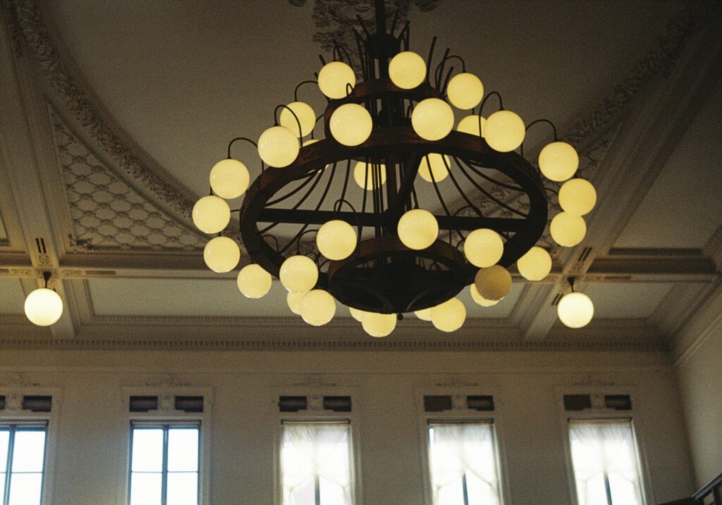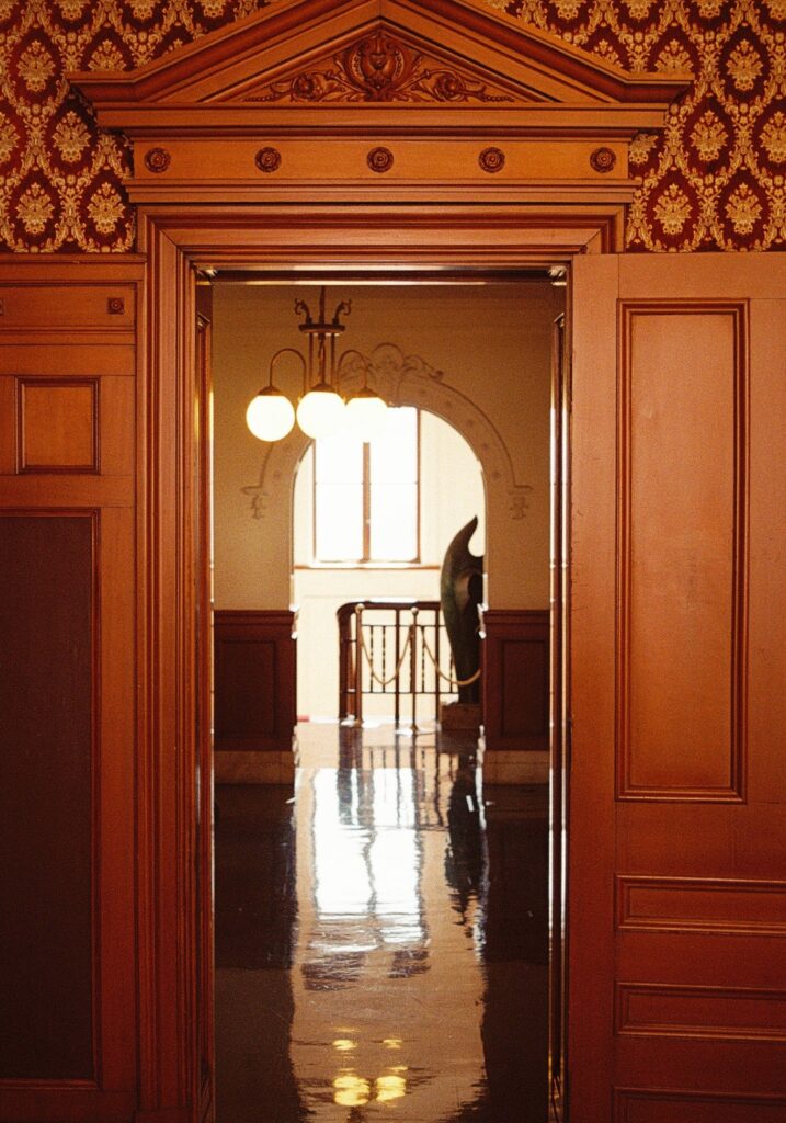 2階ホールの折上格天井は圧巻です。純和風の技法でありながら、洋風建築に見事に調和しています。地元出身でありながらヨーロッパ建築を学んだ山口直昭ならではの、西洋建築技術と日本の伝統建築技術を融合させた貴重な建築遺産でした。