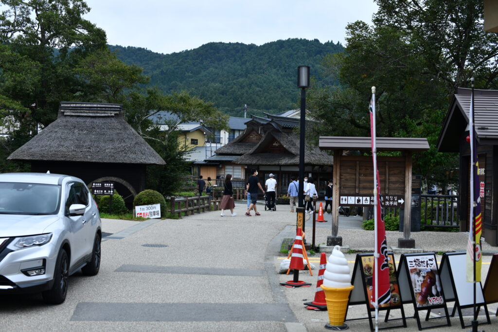 周辺には茅葺き屋根の民家が点在し、日本の原風景を今に伝えています。特に湧池のほとりに建つ木造の水車小屋は、湧水を利用して蕎麦を挽く伝統的な構造を持ち、機械を使わない木造のシンプルな仕組みで今も稼働しています。富士山を背景に、清冽な湧水と伝統建築が織りなす景観は、水と信仰と生活が一体となった日本の水景建築の傑作といえます。