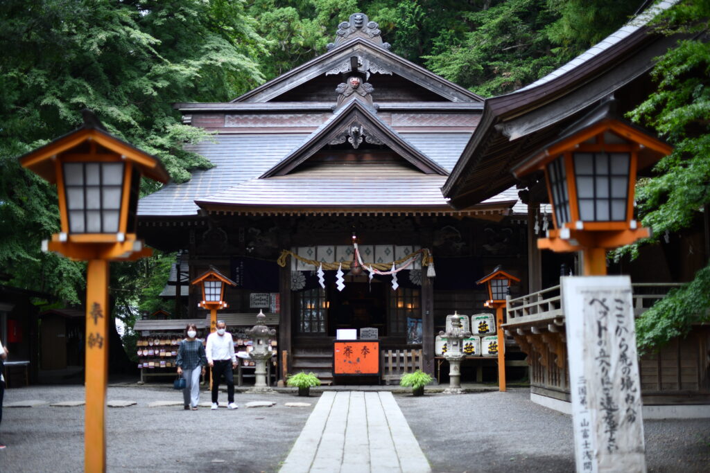 本殿は一間社入母屋造り向拝唐破風付きという格式高い様式で建てられています。戦国時代には武田信虎が新倉山に陣を構え、戦勝祈願をした場所としても知られ、境内全体が富士北口郷の歴史を今に伝える貴重な空間となっています。