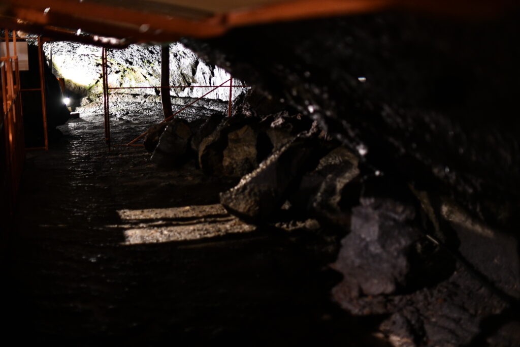 洞窟内の平均気温は3度。壁を構成する玄武岩質が音を吸収する性質を持つため、内部では不思議と音が反響しません。昭和初期まで蚕の卵の貯蔵に使われていた天然の冷蔵庫としての実用的な側面も持ち合わせています。